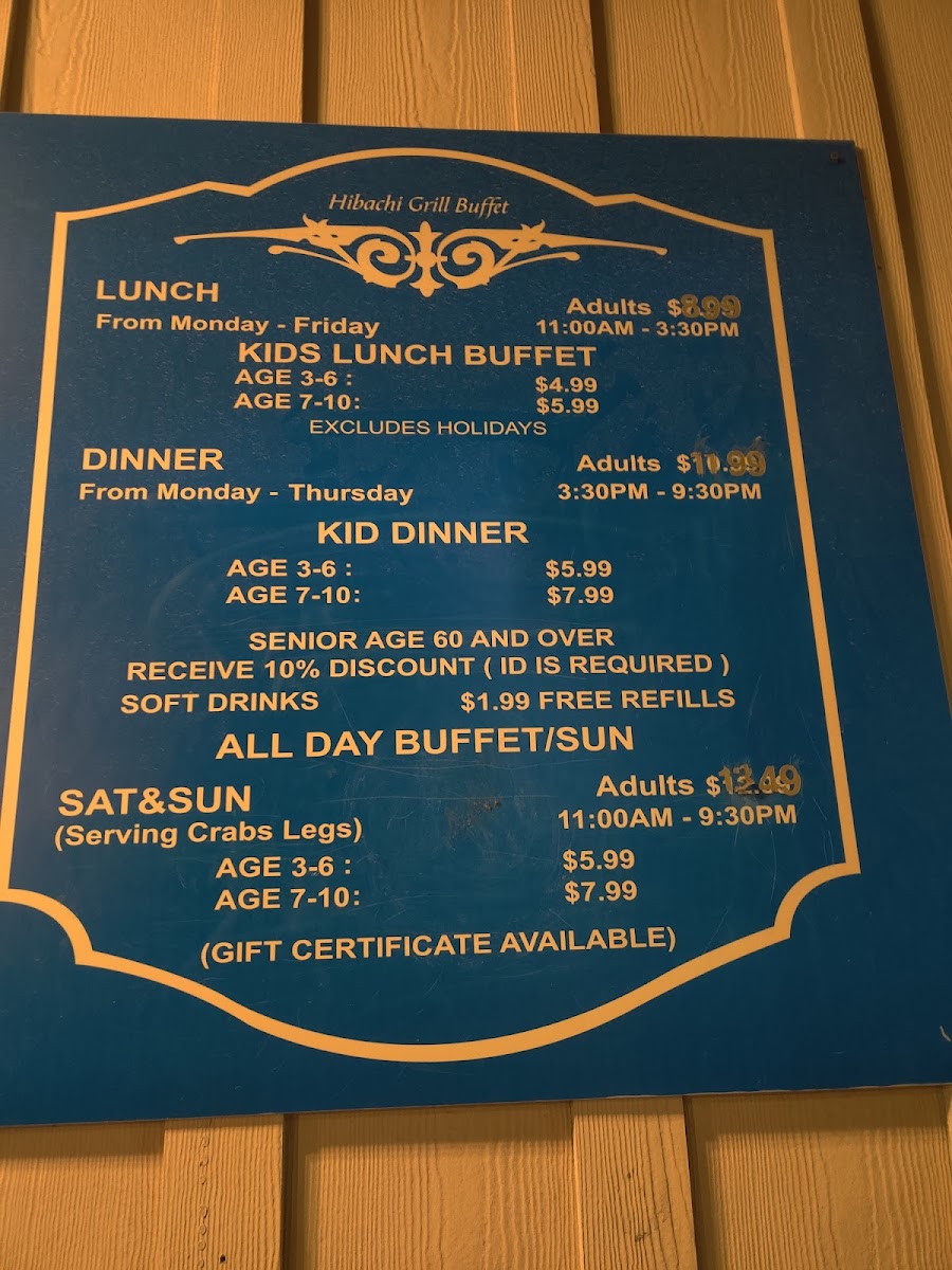 Introducing the menu at Hibachi Super Buffet, located in Mesa, AZ, is a culinary adventure that satisfies every craving. With an extensive selection of dishes, guests can indulge in favorites like Sweet and Sour Chicken and Moo Goo Gai Pan, available for an unbeatable price of $4.25 during lunchtime. For those looking for a hearty meal, options like Chicken in Curry Sauce and Honey Walnut Shrimp shine at just $6.99.